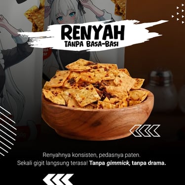 Punya tekstur yang super renyah, kriuk-nya pas, dan nggak keras digigit. Taburan bumbu pedasnya melimpah, bikin mata melek dan tangan nggak bisa berhenti nyomot!